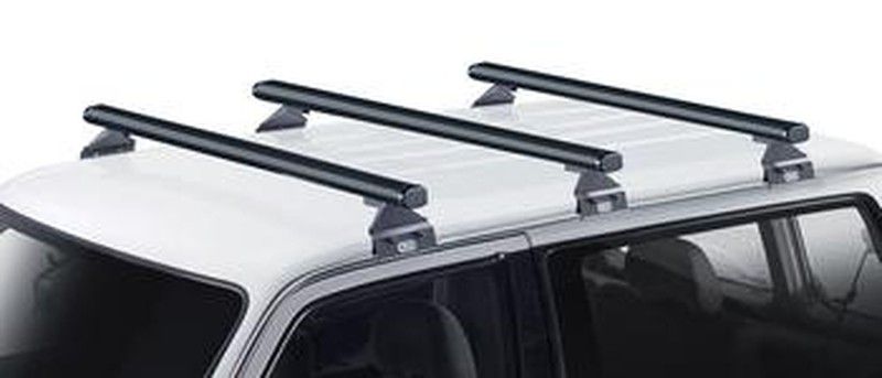 3 Barras de techo reforzadas con perfil aerodinámico de acero galvanizado paraPatrol GR 5p (Y60/Y61 - vierteaguas) (88>97) Incluye kit de fijación específico según modelo de vehículo. Fácil montaje de todo tipo de accesorios.