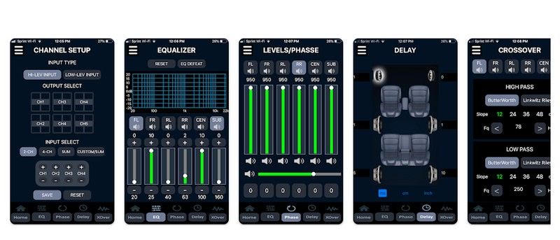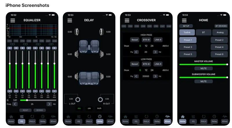 Filtros de paso alto y paso bajo, control de fase, retardo de señal y 15 canales de ecualización paramétrica en cada canal