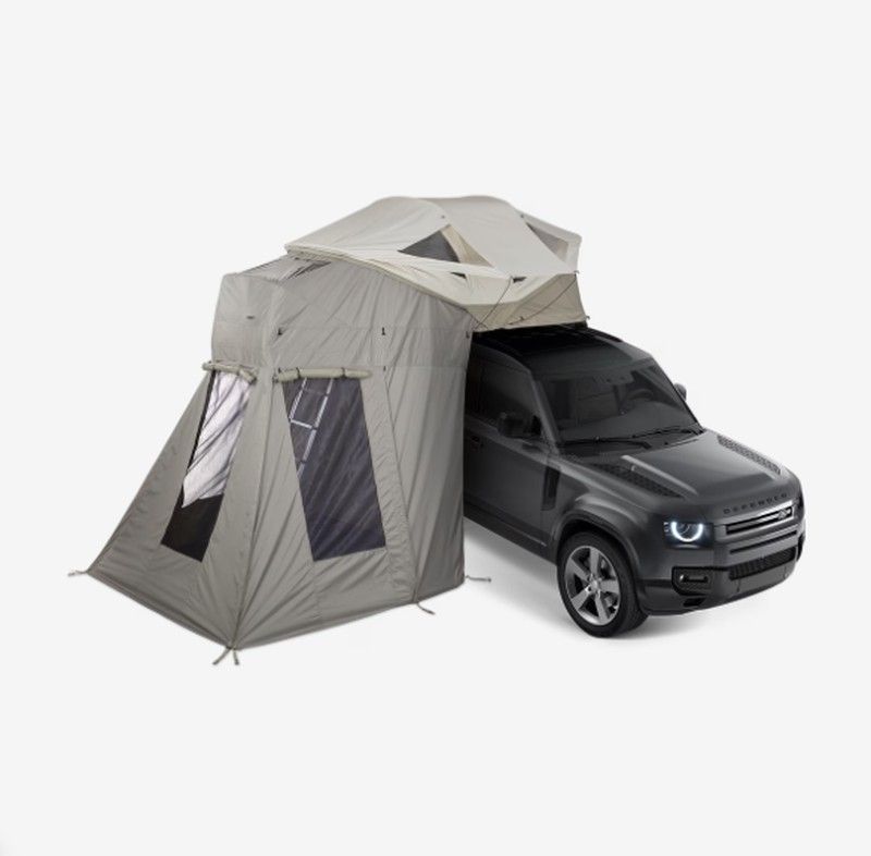 Las puertas delantera y laterales se pueden enrollar para transformar el anexo cerrado en un toldo abierto