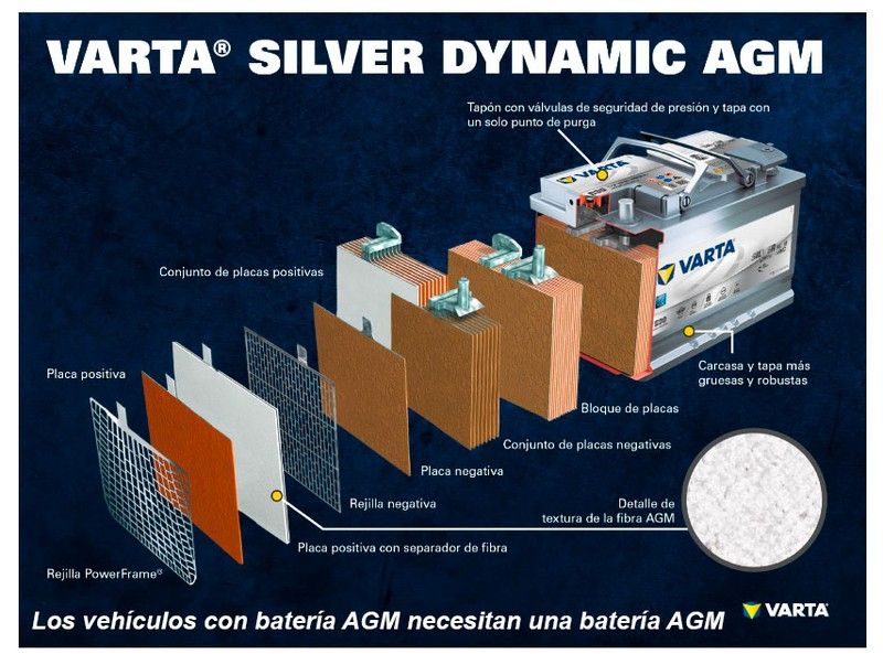 La batería Silver Dynamic AGM de VARTA® proporciona un rendimiento excepcional, con una vida útil tres veces mayor que las baterías convencionales. Es la elección ideal para vehículos que tienen altas demandas de energía, como los eléctricos o aquellos con sistemas Start-stop. Ya sea por un uso intensivo, inviernos fríos, veranos calurosos o la presencia de numerosos accesorios y dispositivos eléctricos, la Silver Dynamic AGM de VARTA garantiza fiabilidad. Por ello, esta batería está presente en el 70% de los coches de nueva fabricación con tecnología Start-stop alimentados por baterías AGM.