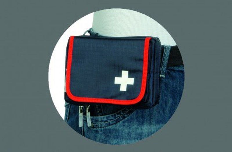 Se puede transportar cómodamente en el cinturón y ocupa muy poco espacio. Cuenta con todos los elementos necesarios para ofrecer una asistencia sanitaria en caso de necesidad.