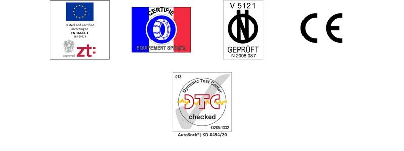 Ha sido aprobado por los principales fabricantes de automóviles y cumple con los requisitos de ÖNORMV5121. Aceptado cuando deban utilizarse cadenas de nieve en los Alpes (Austria, Francia, Alemania, Italia, Suiza). A partir del 1 de diciembre de 2020, la alternativa legal a la cadena metálica de la UE.