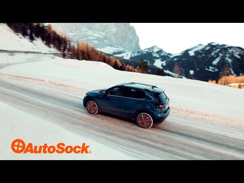 AutoSock 697 Se desarrolló una funda antideslizante para ruedas para aumentar el agarre al conducir sobre hielo y nieve. Se instalan en las ruedas motrices del vehículo. Estire la banda de goma negra en la parte superior de la llanta y coloque AutoSock para cubrir la mayor parte posible de la llanta. Mueva el vehículo hasta que la parte superior de la rueda quede debajo. Luego saque AutoSock y colóquelo sobre el resto del neumático. Cuando empiece a conducir, AutoSock se centrará automáticamente. Se incluyen guantes e instrucciones, y la bolsa también se puede utilizar como soporte para las rodillas.