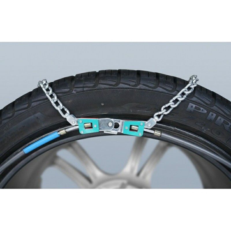 Autotensado automático Especialmente recomendada para vehículos con ABS o sin ABS 2 unidades para las ruedas de tracción Homologación TÜV Montaje rápido y sencillo Para hielo y nieve. fabricadas en acero de alta calidad Tratamiento anti-corrosión. Eslabón ultra compacto de 9mm. Autotensado automático Especialmente recomendada para vehículos con ABS o sin ABS Minimo espacio interior (solo 7mm.) 2 unidades para las ruedas de tracción Homologación TÜV Montaje rápido y sencillo Para hielo y nieve. fabricadas en acero de alta calidad Tratamiento anti-corrosión. Eslabón de torsion axial ultra-compacto de 7mm.