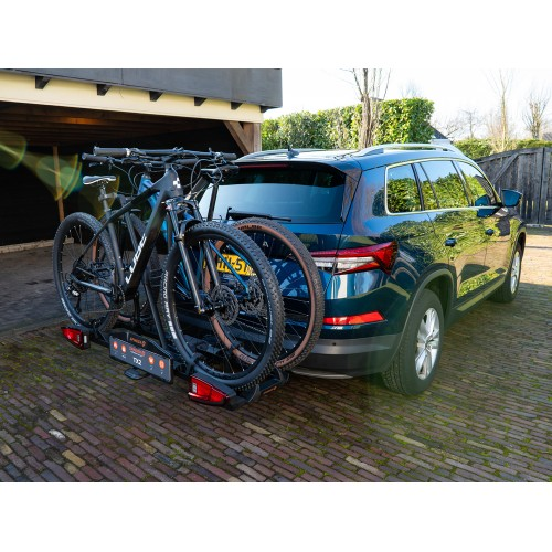 El Spinder TX2 LED se posiciona como el referente de 2026 en el transporte de bicicletas de alta gama. Este portabicicletas premium, acabado en un elegante color negro, es totalmente plegable y abatible, permitiendo acceder al maletero incluso con las bicicletas cargadas. Destaca por sus nuevos brazos lineales extensibles con mordazas giratorias 360º, diseñados para adaptarse a cualquier tipo de cuadro (carbono, sobredimensionados, etc.) con la máxima seguridad. Equipado con tecnología de iluminación FULL LED, es la solución ideal para bicicletas eléctricas (E-Bikes), de descenso o de carretera, soportando una carga total de hasta 60 kg y neumáticos anchos de hasta 3,25".