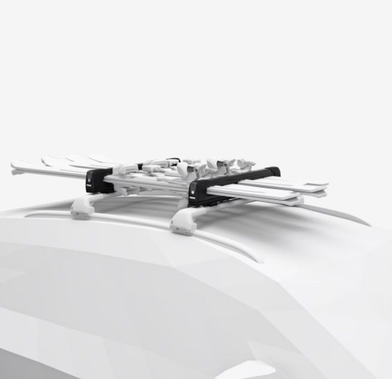 Extensible ,Antirrobo incluido . Capacidad para 5 esquís Carving ó 4 snowPortaesquís Thule SnowPack 7325B.- Fabricado en Aluminio. Ancho de carga 62.5 cm. Capacidad de carga 5 pares de skís ó 4 tablas Snowboards. Botón pulsador extra grande para facilitar la extracción, con guantes. Espacio suficiente para fijaciones altas