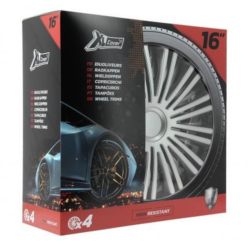 XLCOVER Juego de 4 Tapacubos de 16 Pulgadas – Tapacubos de ABS de Alta Resistencia con Acabado Metálico